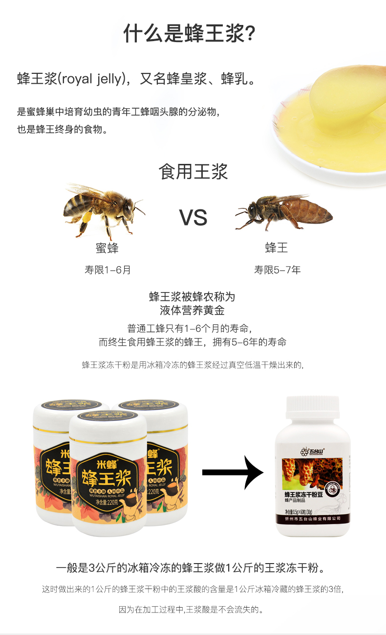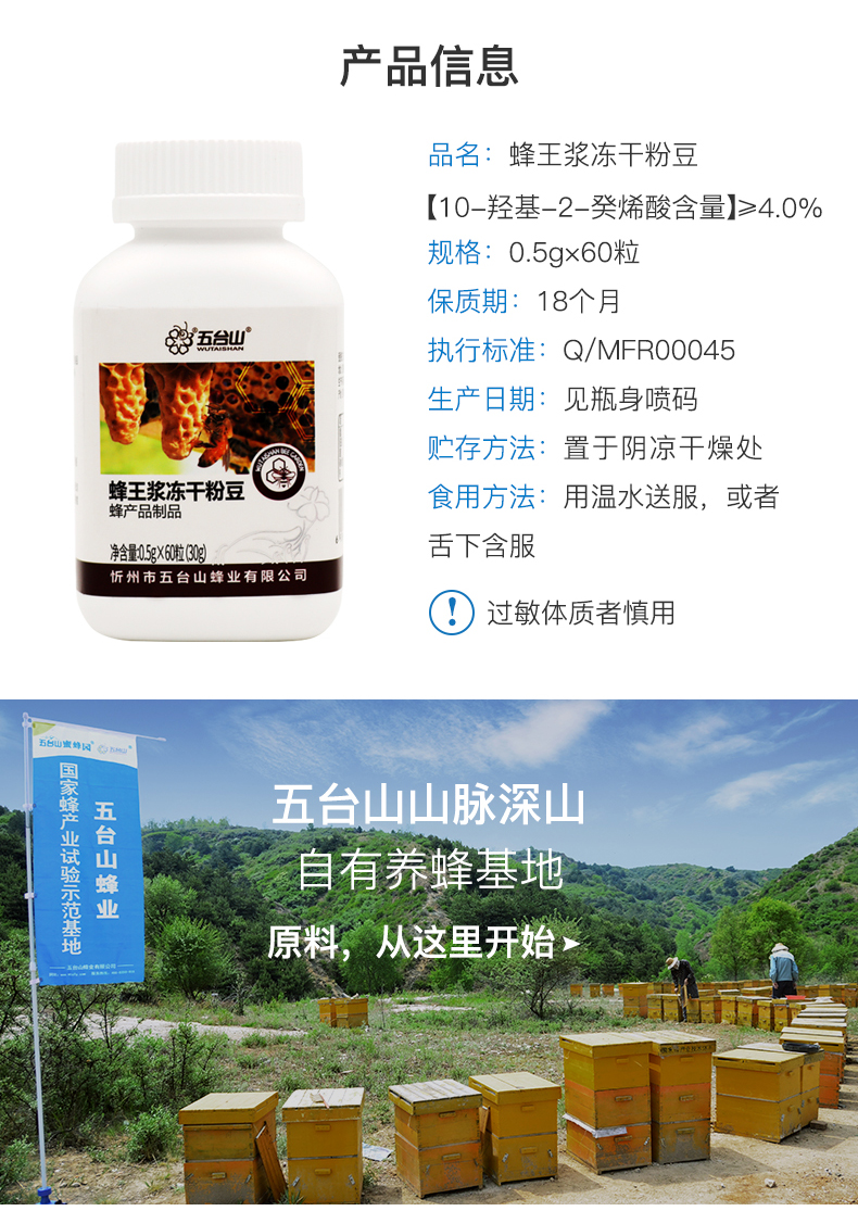 五臺(tái)山蜂王漿凍干粉豆60粒